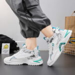 trendy sports sneaker blends street style with modern design, featuring high-quality leather and breathable mesh panels for durability and comfort. The unique black, white, and gray color-block design, complemented by bold trend-inspired logos and detailed accents, makes it stand out from the crowd. The thick, non-slip outsole provides excellent support and stability, perfect for both everyday wear and athletic activities. Whether you’re a fashion enthusiast or someone who prioritizes comfort, this sneaker is a must-have to help you effortlessly embrace urban style. Get yours now and step into a new chapter of fashion!